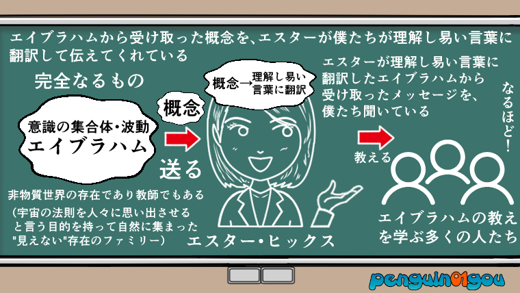 う〜ん、なるほど。エイブラハムとは肉体を持たない意識の集合体」「波動」「ソースエネルギー」「完全なるもの」と呼ばれている、とても高い波動(周波数)の存在という事なんですね。
