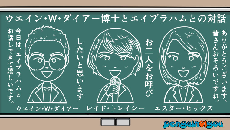 この本ではこういった形で、エイブラハムウエイン・W・ダイアー博士との対話が続いていきます。