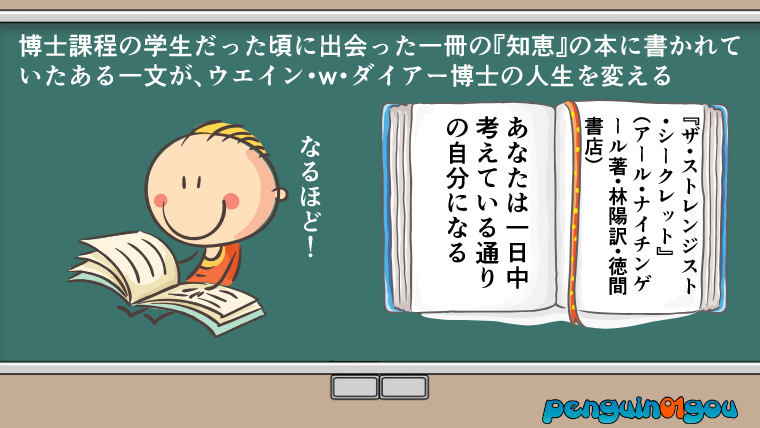 まだ博士課程の学生だった頃、『ザ・ストレンジスト・シークレット』(アール・ナイチンゲール著 林陽訳 徳間書店)という「知恵」の本に出会い、その中のわずか一文が、私の中に眠る意識の力を引き出すにはどうすればいいかを探り続けるきっかけとなりました。