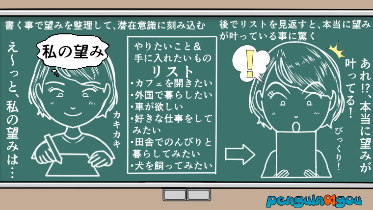著者はそのための方法の一つとして、「望みを書く」と言う事を推奨しています。