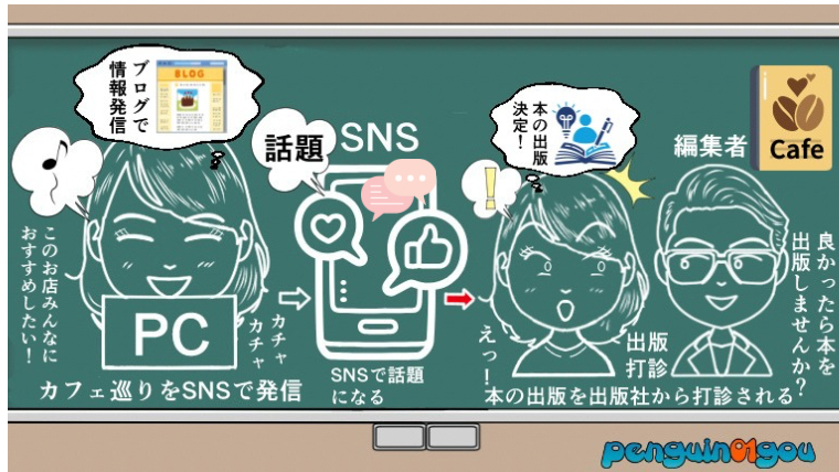 さらには、あなたのカフェ巡りのSNSが評判になり、カフェを紹介する本を出さないかと出版社から打診があったり、テレビであなたのカフェが紹介されるようなチャンスも巡ってきたりします。