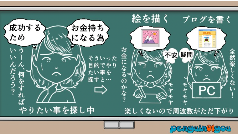 だから、やりたいこと探しをやっても少しも楽しくないんです。「これをやることで、果たしてお金になるだろうか?」という不安や疑問がいつも頭をよぎりますから。
