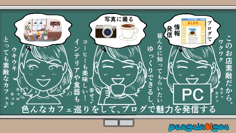 あちこちの素敵なカフェに足を運び、カフェのインテリアや食器、メニューなどの写真を撮って、そのカフェでどんな素敵な時間を過ごせたか、自分のブログで発信もしていたとします。