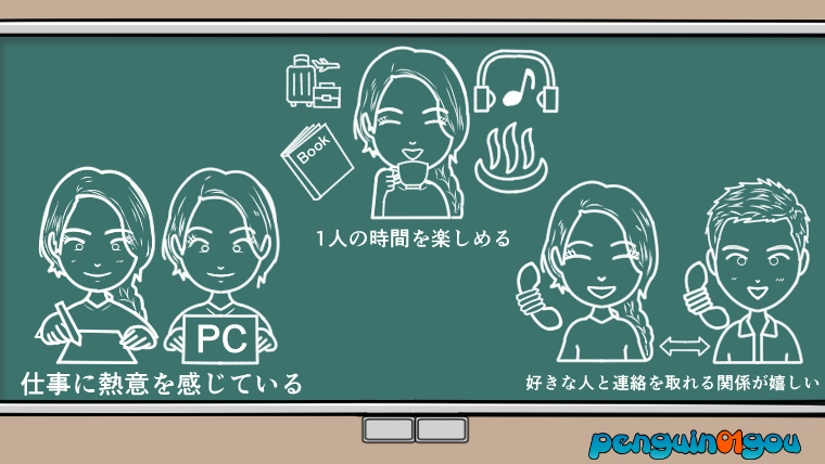 • ・パートナーはいないけど、一人の時間を自由に楽しめる
