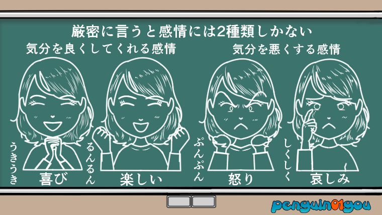 それは、「気分をよくしてくれる感情」と、「気分を悪くする感情」の2種類です。この2種類の感情を通して「内なる存在」は、僕たちとコミュニケーションを図り、目的地(夢や目標)までの道のりを案内(ガイド)してくれるという事です。