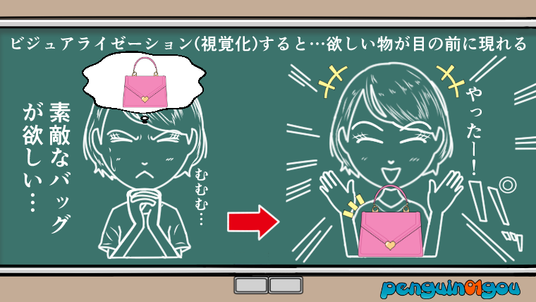 もしかすると、これが引き寄せの法則だと思っている人もいるかもしれません。イラストでイメージするとこんな感じです。(下記イラスト参照↓)
