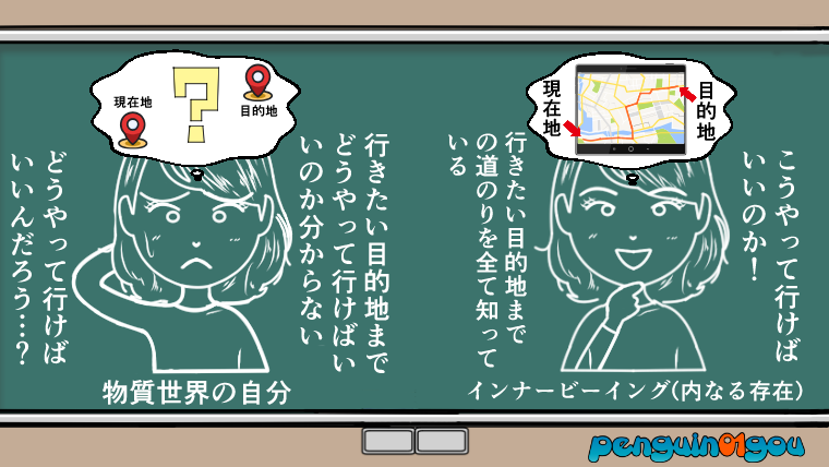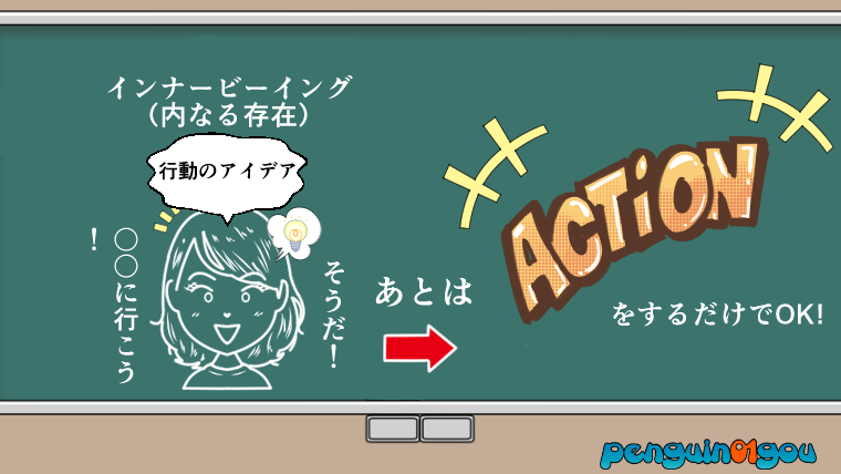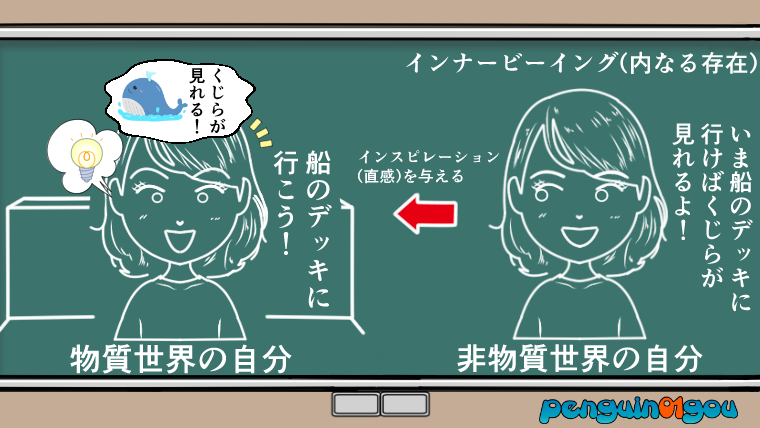 インナービーイング(内なる存在)は願いが叶う道のりを、インスピレーション(直感)を通して僕たちにメッセージを送ってくれています。(下記イラスト参照↓)