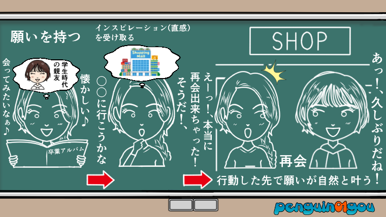 これが引き寄せの法則でよく言われている、インスピレーションに基づく行動というものです。