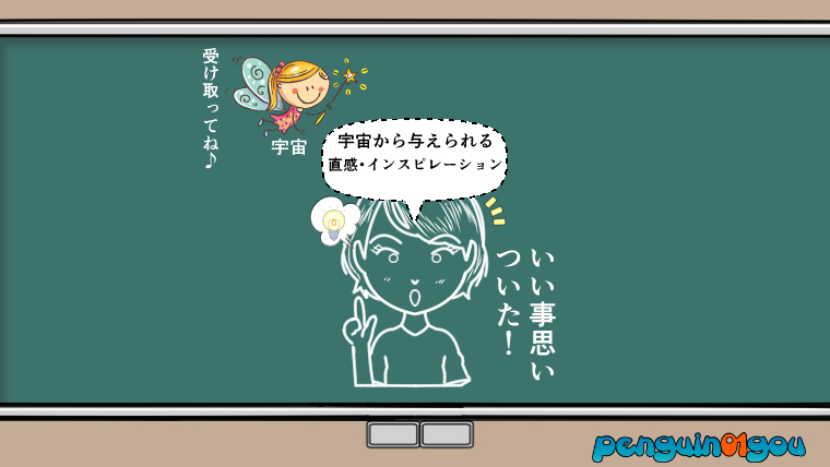 頭の中に「ネガティブな思考」が無いということは、宇宙から与えられる直感・インスピレーションを受け取るのを妨げるものが無いという事なので、宇宙から与えられる直感(インスピレーション)を受け取る事ができます。