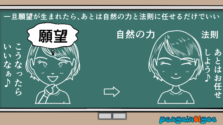 - ・いったん願望が生まれたら、僕たちの仕事は終わりで、あとは自然の力と法則に任せるだけでいいと言うこと
