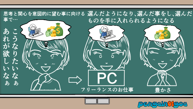 う〜ん、なるほど。「意図的創造の法則」とは、自分の望み通りの人生を創り出すための、自分の望む事に意図的に思考と関心を向け続けることを言うんですね