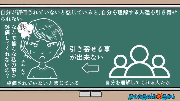 最近起こった出来事で自分が評価されていないと感じていれば、「引き寄せの法則」が自分を理解する人たちを周りに引き寄せる事はあり得ない。それは「引き寄せの法則」に反する。