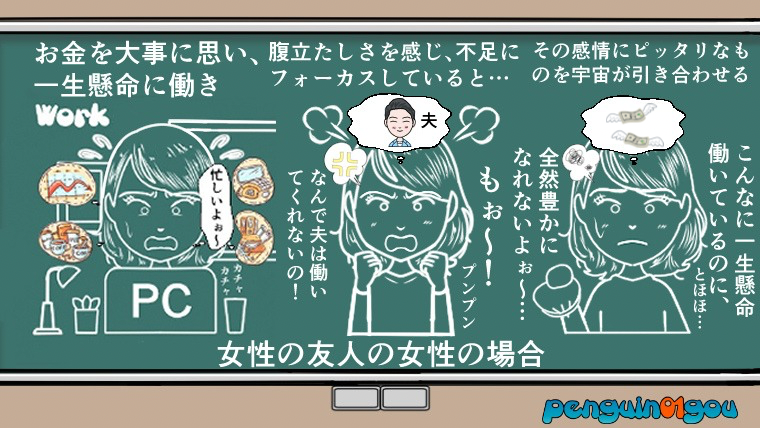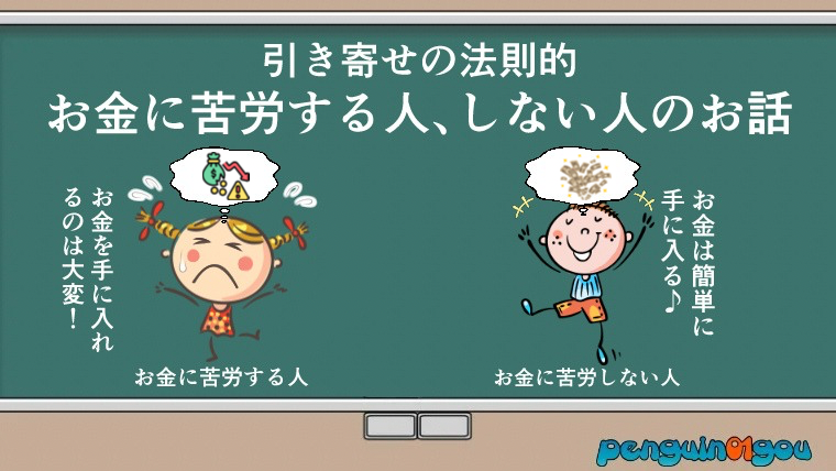 今回紹介するお話は、そんな引き寄せの法則的視点から見た、お金に苦労する人と、お金に苦労しない人との違い、についてのお話を紹介したいと思います。