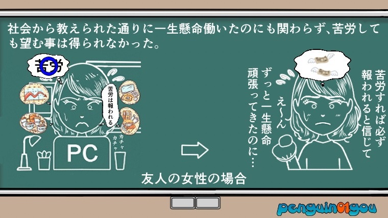 • 苦労を拒否する当然報われない