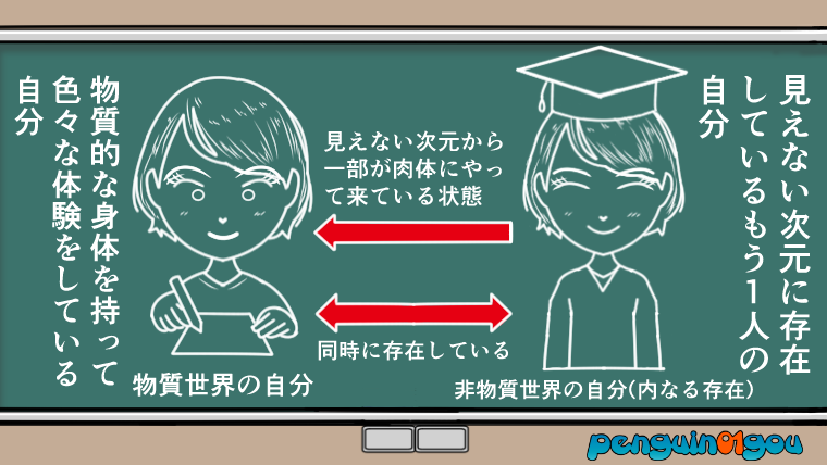 僕たちは今現在、この物質的な身体に宿って色々な経験をしていますが、実はそれと同時に、目には見えない「非物質世界」という所にも、僕たちの一部が同時に存在しているそうなのです。
