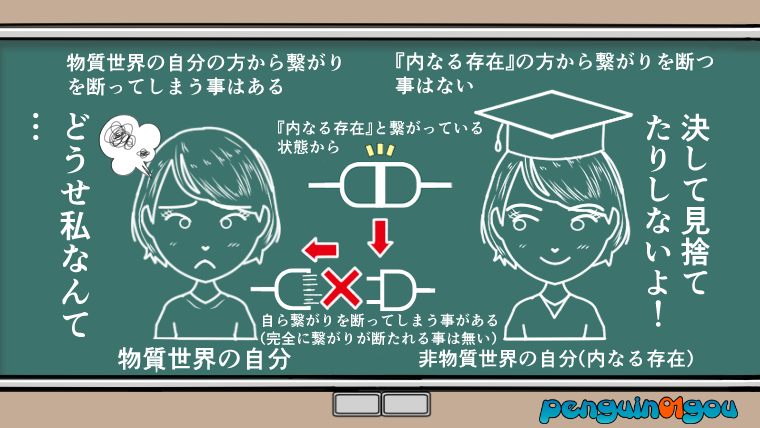 その時僕たちは、「内なる存在」との繋がりを自ら断ってしまっている状態と言うことになります。(下記イラスト参照↓)
