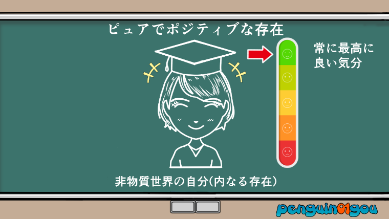 「内なる存在」と言うのは、とてもピュア(純粋)でポジティブな存在であり、常に最高に良い気分の状態であり、とても高い波動を持っている存在でもあります。(下記イラスト参照↓)