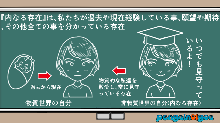 う〜ん、なるほど。「内なる存在」とは、物質的な僕たちを常に見守り、僕たちの事なら何でも知っている存在だと言うことなんですね。
