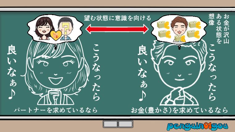 そして、それをやるためには、いま目の前に見えている現状(現実)に対し意識(関心)を向ける事よりも、もっと自分が「望んでいる状況」に対し意識(関心)を向ける、っと言うことが必要になってきます。