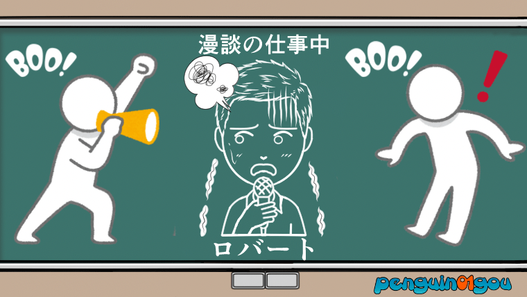 ロバートが仕事である舞台で漫談を始めても、誰も彼に対してヤジを飛ばしたり揶揄(からか)ったりしないどころか、逆にそれまではなかった、客席から歓声や拍手喝采が起こり始めました。