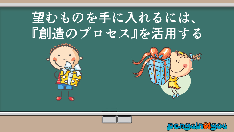 そして著者はこの本の中で、僕たちが人生を思い通りに変え、欲しいものを手に入れるためには、「創造のプロセス」と呼ばれる行程を踏む事が大切だと語っています。