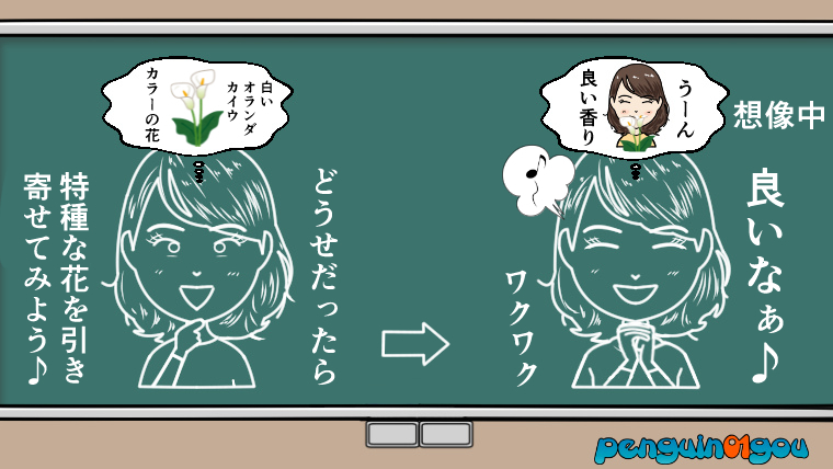 う〜ん、なるほど。願いが叶っている姿をイメージするだけではなくて、(想像)しているものに(愛)を感じることが大切なんですね。